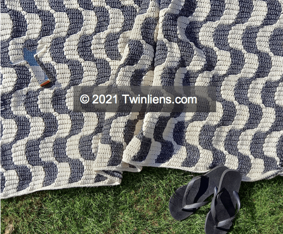 I have a thing for minimalism, even though I’m highly unsuccessful at being minimalist. This throw is supposed to capture Rio’s Copacabana sidewalk, which carries a lot of meaning (I can hear the waves, feel the sun on my skin and smell the sea) while using only black and white yarns.